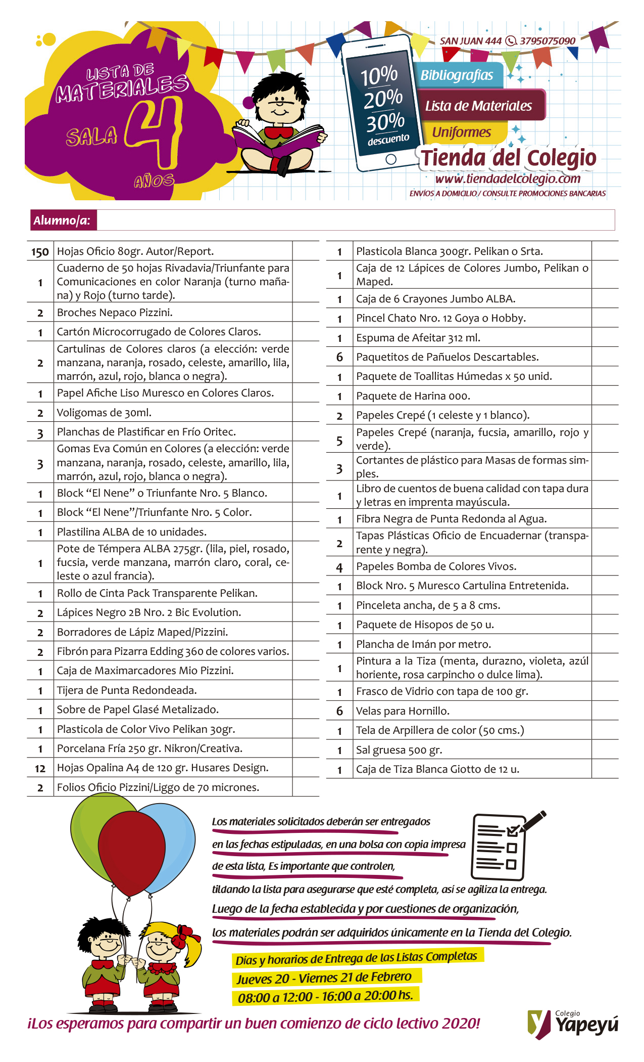 2020 – Lista de Materiales – Sala de 4 Publicado 10 febrero, 2020 en 1275 &veces; 2100 en 2020 – Lista de Materiales – Sala de 4 ← Anterior Siguiente →